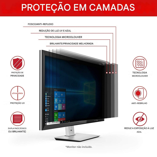 Proteja suas informações confidenciais e reduza o cansaço visual com o Filtro de Privacidade Anti-Reflexo com Corte de Luz Azul. Este protetor de tela é ideal para laptops, computadores e monitores sensíveis ao toque, garantindo que apenas você visualize o conteúdo da tela enquanto bloqueia a luz azul prejudicial.