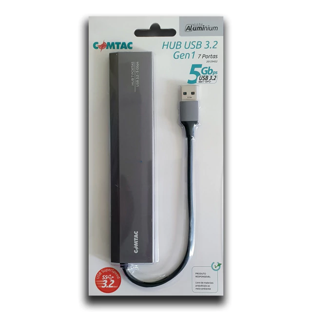 Hub USB 7 Portas 3.2 Gen1 5Gbps Comtac – Alta Velocidade e Eficiência para o Seu Dia a Dia