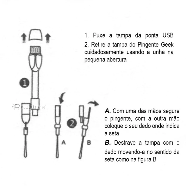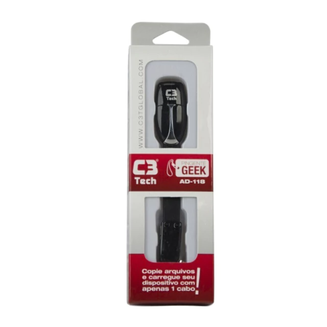 Muito mais criatividade e praticidade pra você! O pingente Geek USB possui um design único que, além de enfeitar o seu dispositivo, permite que você tenha sempre em mãos o cabo de dados certo para o seu gadget. Mini USB 5 pinos com leitor Micro SD, perfeito para recarregar dispositivos com entrada Mini USB. Possui também um leitor de cartão Micro SD facilitando mais ainda o transporte de seus dados.