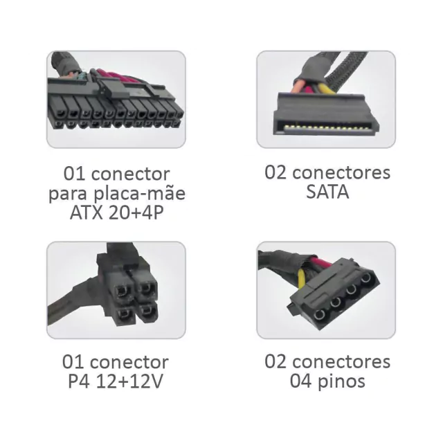 - 5 tipos de saídas (+12V, -12V, +5V, +3.3V, +5SVB)