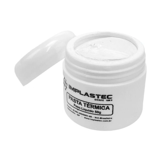 Pasta Térmica é obtida pela conveniente aditivação de polímeros de silicone e óxidos metálicos. Utilizada como condutora de calor nas montagens eletro-eletrônicas devido à alta rigidez dielétrica e excelente condução térmica. Possui alta resistência à formação de arcos e não tem ponto de gota. É especialmente indicada para montagens onde se exige um perfeito acoplamento entre o semicondutor e o dissipador de calor. Melhora a condução, através da eliminação do ar retido na montagem.