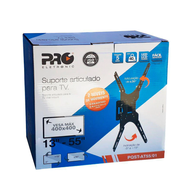 O Suporte articulado é ideal para instalação de televisores tela plana em racks, painéis ou paredes. Acompanha parafusos para as TVs da Samsung (M8 x 45mm)